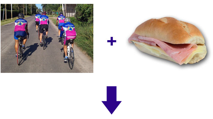 En la mayoría de la veces, con cada salida, se disfruta de un rico sanguchito de camaradería. Particularmente disfruto y mucho esta parte de la pedaleada, llámenlo de gordo, de hambriento, de cero ciclista no me importa. Cuando paramos a comer ese sánguche más una Coca(algunos prefieren algo más energizante) y a cagarnos de risa... NO TIENE PRECIO. Generalmente lo hacemos al llegar a destino porque es cuando estamos todos, de regreso se hace difícil ya que cada uno se va retirando a su casa.